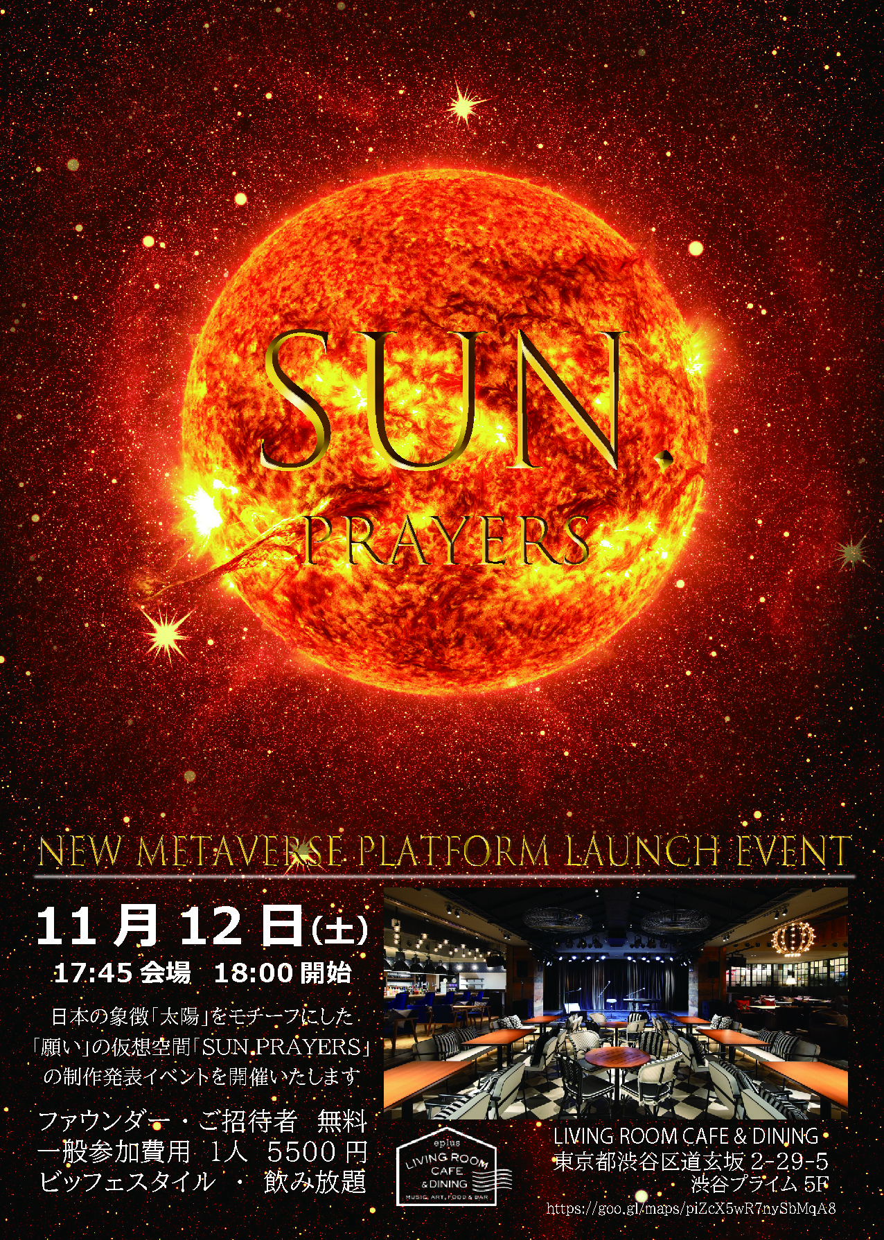 SUN PRAYERS OPNEING EVENT が、11月12日渋谷のリビングルームで開催されます。